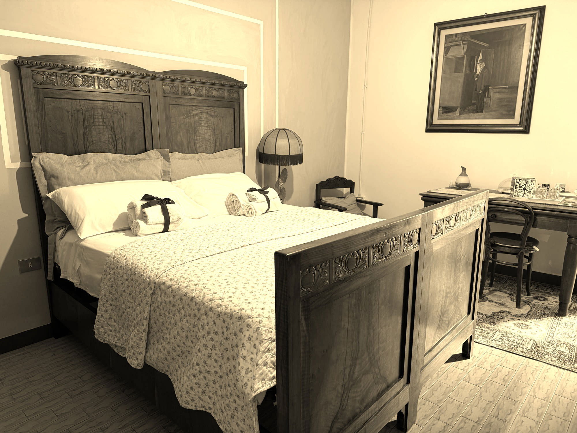 Le camere, con bagno, sono arredate con mobili della tradizione contadina. Ognuna è dotata di angolo lettura e relax. A disposizione degli ospiti l’occorrente per tisane e infusi. L’ampio giardino, confinante con l’aperta campagna, offre quiete e relax.